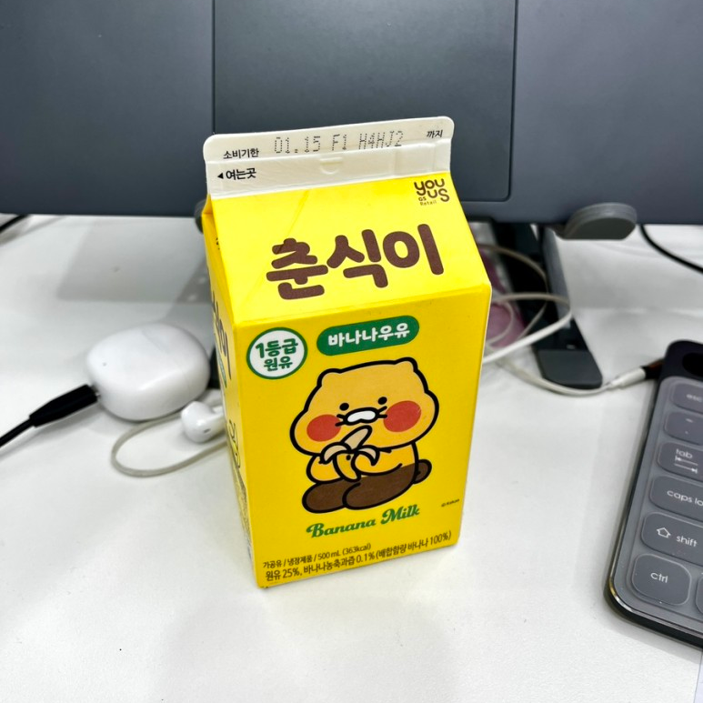 저 개인 적으로는 빙그레 바나나 우유보다 유어스 춘식이 바나나 우유가 더 맛있었습니다.