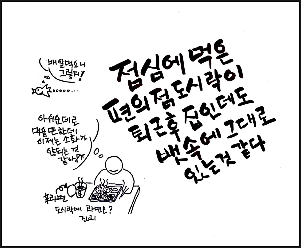 낙서 위주 글을 쓰는 것과 캘리그래피 내용은 두 개의 항목을 섞어서 현재 어디 교습소나 원데이 수업 등에 참여하지 않고 오롯이 독학으로 연습 중인 캘리그래피에 간단한 사연을 접목하는 형태로 이것은 아직 돈을 못 벌고 있지만, 현재 연습 중에 있습니다.