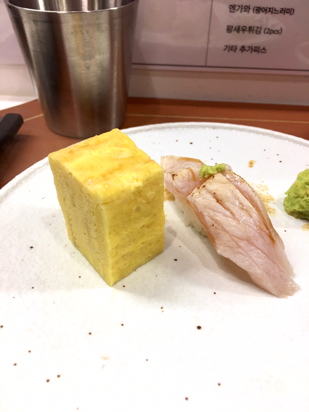 청어는 다들 아시겠지만 등 푸른 생선이며 과메기를 만드는 재료로 잘못 관리하면 비린맛이 많이 나는 생선이지만 역시 오마카세라 그럴까요? 부드러운 식감에 맛도 좋은 초밥이었습니다.