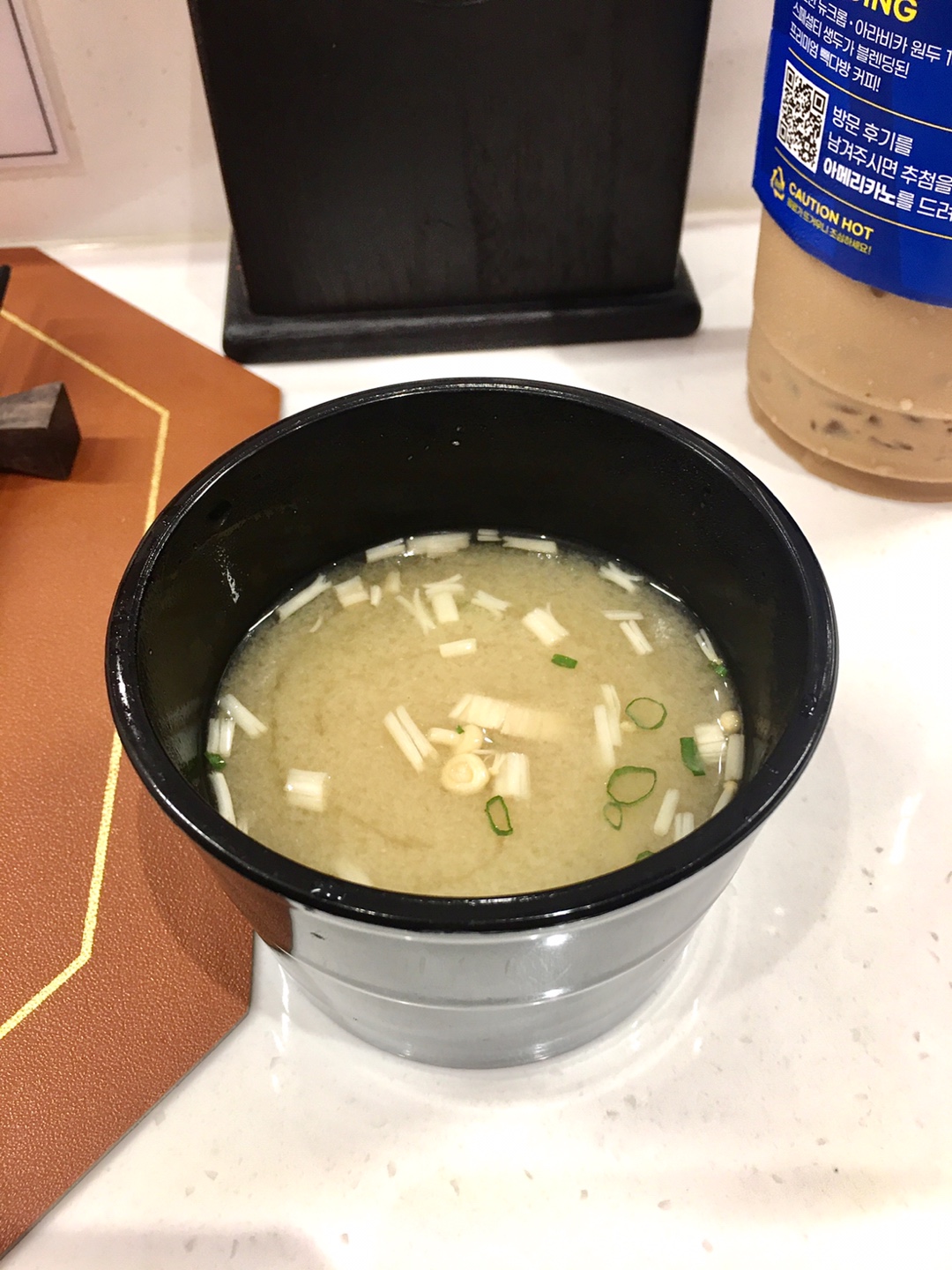 초밥 세 개를 먹고 난 다음에 일본 된장과 팽이버섯 실파 쪽에 가까운 파를 넣은 장국으로 입안을 개운하게 하니 다음 초밥이 더 기대가 되었습니다.