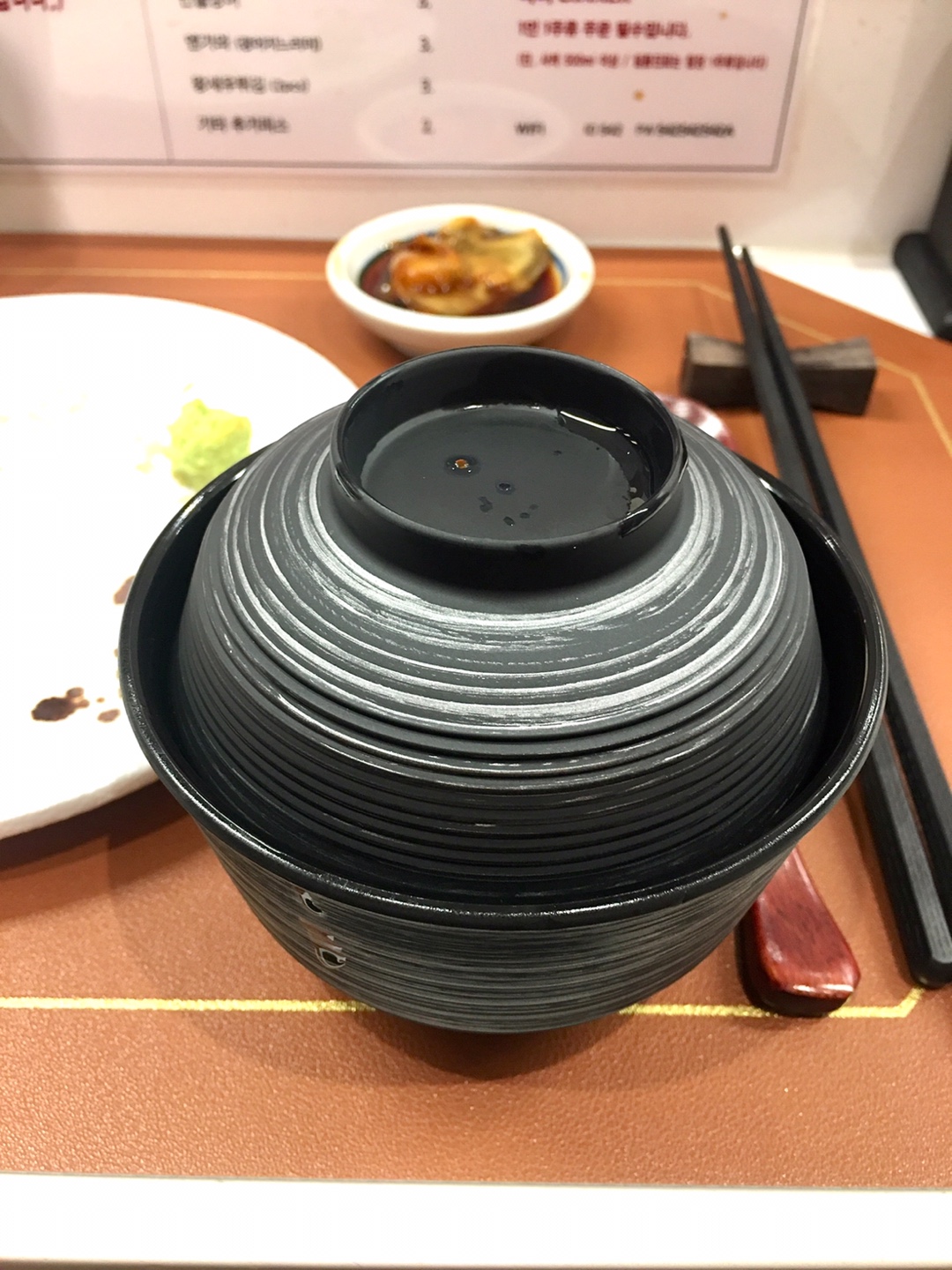 우동을 먼저 말씀드리면, 초밥에 비하면 일반적인 음식이죠 아무래도 우동 전문점이 아니니까 큰 기대를 하지 않고 먹었는데 궁금해 지더라고요 보통 일반 초밥집에서는 우동다시라는 것을 사용하여 우동 국물을 만들고 그 우동국물에 일본된장을 풀고 장국을 만드는데 '오사이초밥'집은 어떨지 말이죠