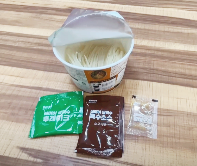 그런데 애석하게도 상품 소개 사진처럼 고기가 들어 있지는 않네요, 쌀국수에 들어있는 고기 상당히 맛이 있는데 그것까지 하기에는 수지타산이 맞지 않아서였을까요?