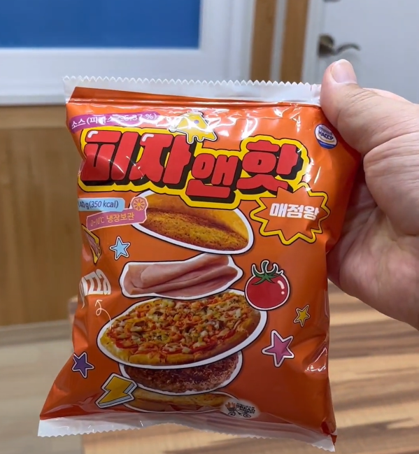 피자를 빵이라고 해도 되나 싶은데 이 제품의 포장지에는 분명 빵이라고 적혀 있었고, 막상 꺼내서 보니 모양새는 정말 저렴한 햄버거의 모양을 하고 있었습니다.
