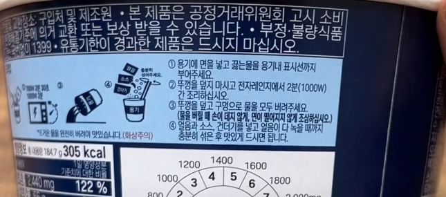 그렇게 조리법을 읽고 나서 잠시 생각해 보니 아무리 생면이라고 하더라도 오래 보관하기 위해서 비닐 포장지에 밀봉을 할 텐데 그러면 뭔가 탱탱한 면발을 살릴 수 있도록 한번 데치기라도 하지 않을까? 하는 상시적인 생각을 구매할 때는 왜 못했는지!, 사발면 용기에 적힌 조리법은 역시 탱탱한 면발을 위한 조리법임이 확실했습니다.